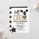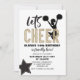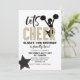 Vamos Cheer! Convite de aniversário de líder de torcida em ouro brilhante e preto.