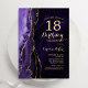 Roxo e ouro agam 18º convite de aniversário. Elegante design moderno com aquarela agate marble geode background, faux glitter gold e typografia script font. Trendy convida o cartão perfeito para uma comemoração de dia das mulheres na moda. Impressos convites Zazzle ou modelo de impressão digital instantânea para download.