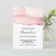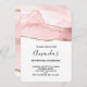 Um convite de aniversário com um design elegante e elegante. Cores de água rosadas cor-de-rosa com um aspecto sutil de agata de mármore e fita de ouro com brilho dourado colado no meio.