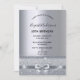 Um convite moderno, na moda e glamouroso para a 50ª ou qualquer festa de aniversário etária da mulher. Um fundo falso de prata com um elegante arco de prata falso, fita e brilho. O nome é escrito com um moderno script estilo escrito à mão preta. Modelos para os detalhes da sua festa.