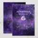 Celebre o aniversário do seu filho com este convite de aniversário temático de galáxia e espaço, apresentando um fundo cósmico roxo escuro repleto de estrelas e nebulosas. Este design é perfeito para uma festa no planetário, aniversário temático de espaço sideral ou qualquer celebração infantil inspirada em ciência e astronomia. Este convite de aniversário espacial moderno é ideal para meninos e meninas que amam planetas, estrelas, galáxias e o universo. A tipografia futurista mantém o visual elegante, ao mesmo tempo em que permanece divertido e apropriado para crianças. O convite é totalmente personalizável, permitindo que você personalize o nome, idade, data, hora, local e detalhes de RSVP. Pode ser usado para qualquer idade e funciona lindamente tanto como um convite impresso quanto como um convite digital.