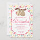 Primavera Flower Sloth Festa de aniversário Invite. Vamos Sai!