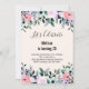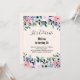 Convite de aniversário com um lindo design floral feito com aquarelas. Flores de jardim rosa, roxo e verde.