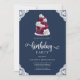 Convite Floral de Aniversário do Elegante Marinho Blue Burgundy.
