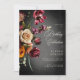 Entra num reino de elegância refinada com o nosso convite de aniversário floral e escuro. Concebido para cativar os sentidos, este convite ostenta um fundo negro impressionante adornado com uma explosão de flores autóctones em laranja queimada, cor de laranja queimada, matizes cremosos e toques de ouro luxuoso, complementados por uma folhagem verde-oliva exuberante. O texto cremoso flutua delicadamente sobre um manto suave de luz, acrescentando um toque de elegância ao fascínio geral. Assuma a opulência e dê o tom para o seu dia especial com este maravilhoso convite, sem dúvida para deixar uma impressão duradoura sobre os seus convidados. Criado pela imprensa simplesmente de farmácia.