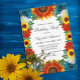 Design floral elegante e colorido para um evento de verão no quintal. Apresenta rosas azuis, margaridas brancas, flores silvestres vermelhas e girassóis