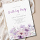 Convite de aniversário floral roxo elegante. Fácil de mudar o texto. Bonito floral para primavera, verão e outono.