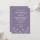 Convite de aniversário simples único com flores brancas românticas e elegantes e borboletas em fundo roxo macio PARA PRODUTOS MAIS CORRESPONDENTES clique na coleção acima ou entre em contato comigo.