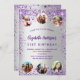 Convites Aniversário, fotos roxas prateadas, amigos luxo