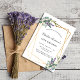 Um fundo branco na moda na frente. Decorado com eucalipto e lavandas florais. Um quadro geométrico dourado. Personalize e adicione um nome e detalhes. Fundo: fundo colorido de cinza verde.