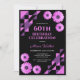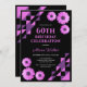 O convite de aniversário Elegante e na moda apresenta margaridas roxas e ornamento de elementos triangulares geométricos impressionantes em fundo preto. Você pode personalizar facilmente os detalhes da festa, incluindo a idade, para torná-la ainda mais personalizada. Compartilhe a alegria com os seus amigos e família e faça deste aniversário milestone para se lembrar!
