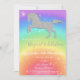 Uma dança de prata sparkly do unicórnio do brilho em um arco-íris bonito do inclinação é o convite perfeito para sua festa de aniversário temático do unicórnio