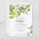 Convite de aniversário | limões e flores de aquarelas Bonito adornam a frente, enquanto as riscas de pincel de cor amarela pálida e verde-folhada são apresentadas na caligrafia escrita à mão emparelhada com uma fonte não serif limpa para um recurso rústico moderno. Design por ©WhimsicalArtwork™ para o BarefootBride™. Isto é parte de uma suite de casamento completa e igual, assim como aniversário e chá de fraldas. Se precisar de ajuda para personalizar este design, entre em contato com indy.designer@yahoo.com