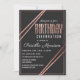 rosa de ouro elegante, chico, e preto moderno e imprimido esmaecido, listrado linear e detalhe detalhado com tipografia rosa de ouro sobre fundo preto, Convites de aniversário. Este design clássico e sofisticado é perfeito para o indivíduo clássico, na moda, e tradicional de aniversário. Personalize com sua própria mensagem na frente e personalize o monograma no verso. Todas as impressão de fotografias design