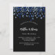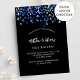 Um moderno, elegante e convite. Um fundo preto decorado com confete azul. Personalize e adicione um nome e detalhes. Texto branco.