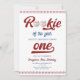 Nosso Pequeno Slugger está virando um! Este divertido convite de aniversário para meninos modernos apresenta um tema de baseball. Ele tem um esquema de cores vermelho, branco e azul para mostrar o passatempo favorito da América.