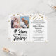 Celebre qualquer aniversário de casamento com convites pretos e dourados com um design de título em letra de caligrafia ou tipografia retrô # ANOS EM CONSTRUÇÃO que incorpora quantos anos eles estão casados (por exemplo, 50 ANOS EM CONSTRUÇÃO) e o ano do casamento dentro do design, duas fotos (talvez fotos do Então e do Agora) e uma borda de confetes dourados. Entre em contato com o designer via Zazzle Chat ou makeitaboutyoustore@gmail.com se você quiser este design modificado, em outro esquema de cores, em outro produto ou quiser itens coordenados.