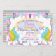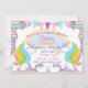 Obtenha pronto para uma celebração mágica e dos elegants do aniversário com este convite glittery pastel precioso. Características dois unicórnios adoráveis e um fundo glittery do arco-íris pastel. Os detalhes são escritos em coordenar cores cor-de-rosa e roxas. Hospede uma festa de aniversário enchanting com este convite surpreendente do unicórnio/Unicornio.