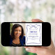 Um fundo branco, decorado com um arco e uma armação azul-reais desenhados à mão. Personalize e adicione uma foto, nome e detalhes da festa.