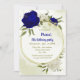 Belo convite de aniversário com flores azuis e brancas reais e folhas verdes Os detalhes da brilho do ouro são simulados. É adequado para convites para noivas e chás de fraldas. PARA MAIS PRODUTOS CORRESPONDENTES, clique na coleção acima ou entre em contato comigo