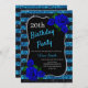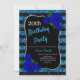 O preto e azul elegante brilha e convite de aniversário azul-rosa profundo para mulheres de qualquer idade. A idade pode ser alterada para qualquer idade. O texto pode ser alterado para qualquer coisa para ajustado do seu evento. Fontes, cor da fonte e texto são completamente personalizáveis! A forma e o tipo do papel podem ser personalizados para ajustado do seu orçamento e sabor!