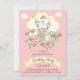 Um reino mágico do castelo aquoso com princesa e dragão, convite de aniversário rosa de menina. Impressionante, mágico e fofo.
