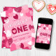 Dia de os namorados Pequeno Querido Rosa, Convite De Aniversário. Primeiro convites de aniversário personalizados de nome e endereço, com fundo cor-de-rosa pastel e corações cor-de-rosa, branco, magenta e burgundy. fácil de personalizar modelo, para um primeiro aniversario de um ano de menina.