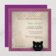 Convites da "doçura ou travessura" do Dia das Bruxas, por red_dress, caracterizando um teste padrão de bolinhas roxo e amarelo, um papel velho, gato preto do Dia das Bruxas, gráfico do vintage de uma coruja que senta-se em uma abóbora cinzelada e em cores do Dia das Bruxas: roxo, verde, amarelo, alaranjado.