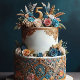 CELEBRE UM ANIVERSÁRIO MUITO ESPECIAL COM ESTE CONVITE FESTIVO. APRESENTA UM BOLO DE CAMADA FLORAL SOFISTICADO. EDITE A PARTE TRASEIRA PARA OBTER INFORMAÇÕES SOBRE O CONVITE.