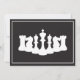 Este sofisticado design de convites de aniversário apresenta um esquema de cores preto e branco com bordas em negrito. A frente apresenta uma peça de xadrez do rei. A parte de trás apresenta uma linha em forma v de peças de xadrez para incluir o rei, bispos, cavaleiros e rochas.
