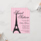 Um convite temático na moda do doce 16 de Paris. Caracterizando uma ilustração da torre Eiffel em uma listra cor-de-rosa modele o fundo. Tamanho: 4,5" x 6,25" gráficos por ilustrações de JW em MyGrafico