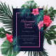 Celebre o seu aniversário com um monte de neon! Nosso convite elétrico de aniversário de neon é perfeito para alguém que busca uma vibração ousada na vida noturna, com uma estética retrógrada moderna. Inspirados pela beleza e tendências dos sinais de neon, criamos tipografia de sinais luminosos do estilo neon rosa, aliada a verde elétrico iluminante e verde-palma tropical aqua verde-folha e hibisco rosa. Um cenário azul escuro moderno é emparelhado com sotaques elétricos de cor rosa, verde e aqua para criar esta design de aniversário eletrificante de design. Toda a trabalho de arte de aquarela é pintada manualmente por nós com efeitos tipográficos personalizados para criar nosso único e memorável design de aniversário neon.