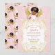Convites Anjo Bebê Rosa Dourado Menina Afro-Americana