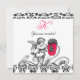 Pintura vintage de anjo preto e branco com flores fucsias. Espirais elegantes, damasco preto com uma pedra de rubi 3D brilhante. Este design artístico e sofisticado é facilmente personalizável com seu texto e iniciais para cerimônia de casamento, cartão de anúncio de núpcias, cartões de mesa, save-the-date, agradecimentos, chá de bebê, chá de noiva, festas de 16 anos, festas de quinceañera, chá de noivado romântico, Natal, feriado, escritório, reuniões de família, celebrações, aniversários, encontros ou praticamente qualquer evento que você desejar! Design digital por BALDESIGN3D (c).