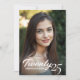 Este elegante convite à formatura captura a alegria e a conquista da ocasião com um toque pessoal. A frente da placa apresenta sua foto favorita do formando, com o ano de graduação exibido elegantemente em um roteiro de pincel gracioso com o nome dos formandos mostrado abaixo. No verso, o cartão tem um fundo de marrom estático, bordado no topo e no fundo por uma borda floral branca querido que adiciona um toque de elegância do eterno. Adicione os detalhes do evento, fornecendo aos convidados todas as informações necessárias em um formato claro e na moda. Este convite equilibra perfeitamente a celebração pessoal e a elegância formal, fazer-o como um bem-estar apreciado para este acontecimento marco.