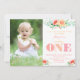 Primeiro aniversario Floral Cartões de convite para raparigas em cores de Verão, como amarelo, coral e rosa