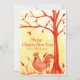 Celebrar com uma festa em homenagem ao Ano Novo Chinês - Ano Novo - Ano do Cartaz - com este convite decorado com um galo branco próximo a uma árvore pintada em aquarela em tons de vermelho vivo e amarelo ouro.