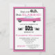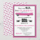 Este convite de aniversário do divertimento para suas características um carro retro clássico do rosa do vintage! Fácil personalizar com seus ano, nome, e informação do partido. Comemore seu auto clássico com este convite clássico!