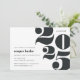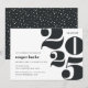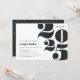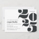 O convite para festas de formatura moderno apresenta "2023" em letras de tamanho excessivo, com os detalhes do seu partido alinhados à esquerda. Convites invertendo para pontos de confete brancos em preto-escuro.