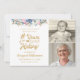 Convidar convidados para uma festa de aniversário # ANOS NO FAZER para qualquer aniversário de idade para ela com estes convites com um título de tipografia em ouro editável que incorpora sua idade e ano de nascimento no design, uma fronteira de buquê floral com flores azuis, rosa e brancas acentuadas com folhas verdes e douradas e personalizadas com duas fotos (talvez usem fotos de então e agora para um espaço memorável) . ALTERAÇÕES: Altere a cor preta do plano de fundo ou selecione um plano de fundo gráfico estilizado clicando em PERSONALIZAR MAIS na seção PERSONALIZAR. Entre em contato com o designer por meio do Zazzle Chat ou makeitaboutyoustore@gmail.com se você quiser que este design seja modificado, ajude com um esquema de cores diferente, seja transferido para outro produto ou queira coordenar itens.