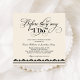 Este convite de jantar de ensaio clássico em formato quadrado apresenta a frase "Antes que Digam Eu Aceito" em dramática caligrafia preta com floreios de arabescos em um fundo marfim quente. Uma faixa de borda damasco preta na parte inferior adiciona um toque final sofisticado. Todos os nomes, datas e detalhes do evento são totalmente editáveis. Uma escolha elegante para um jantar de ensaio de casamento formal ou clássico.