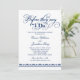 Este convite de jantar de ensaios crocante e clássico apresenta a frase "Antes de dizerem Sim" em caligrafia naval rica com floreios de pergaminho ondulantes em um fundo branco limpo. Uma faixa de borda de damasco naval na parte inferior completa o visual polido e formal. Todos os nomes, datas e detalhes do evento são totalmente editáveis. Uma escolha linda para um jantar de ensaios de casamento naval, náutico ou formal.