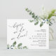 Belo Design romântico moderno, no eucalipto deixa a água verde temida, Janto de ensaio de casamento e cartão de convite para dança (Antes disso, jantamos). Isto é perfeito para a festa de comemoração do janto do ensaio de casamento. Adicione seus detalhes de celebração. #TeeshaDerrick