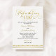 O convite para janto de ensaio de casamento elegante e chic apresenta um roteiro de caligrafia Antes que digam design de tipografia "Eu faço" com texto personalizado que pode ser personalizado para o evento. Esquema de cor da folha de ouro preto clássico, branco e fino com acentuações padrão damascos, listrados e pontilhados.
