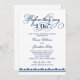 O convite para janto de ensaio de casamento elegante e chic apresenta um roteiro de caligrafia Antes que digam design de tipografia "Eu faço" com texto personalizado que pode ser personalizado para o evento. Esquema de cores azul e branco do marinho clássico com sotaques damascos, stripe e padrão pontilhado.