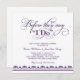 O convite para janto de ensaio de casamento elegante e chic apresenta um título de roteiro de caligrafia: Antes de dizerem "Eu faço" e detalhe de borda úmida/listrada. Design quadrado. Esquema de cor púrpura e branca de beringela escura.