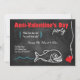 Convites divertidos para comemorar uma festa anti-Dia de os namorados, desenhados em um estilo de quadro negro com uma piranha atrás de um coração partido em um gancho.