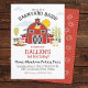 Crianças convite de festas primeiro aniversario com um celeiro vermelho e animais de fazenda bonitos. Perfeito para o seu cesto de barnyard! Completamente personalizável. Mude o nome e a idade do aniversariante. Projetado para você pelo Blackberry Boulevard.
