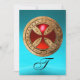 Design elegante com cruz medieval com pedra gema 3D azul-aqua.Modelagem e renderização 3D por parte da Bulgária Lumini /(c)