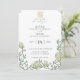 Flores Anticas Antigas Inglesas e Vinhas de Vinho em tons de bege verde e envelhecido, convite para o casamento. A placa apresenta suporte a cor verde vítreo sólido.